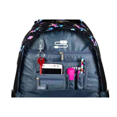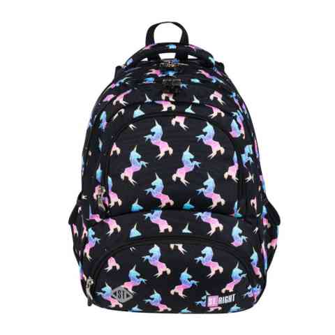 Ez a különleges táska a Rainbow Unicor, vagyis Szivárvány Unikornis nevet a számtalan színpompás unikornisos mintáról kapta, melyek a külsejét borítják. Ha egy látványos hátizsákot szeretnénk iskolába, munkába vagy utazásokhoz, ez a St.Right modell remek választás. A táska ergonomikus kialakításának köszönhetően rendkívül kényelmes, merevített, párnázott hátfallal van ellátva, ami még légcsatornákat is kapott. A vállpántok szintén párnázottak és méretre állíthatóak. A többrekeszes kialakításnak köszönhetően az iskolaszerek vagy egyéb felszerelések remekül szortírozhatóak és kényelmesen tárolhatóak benne.