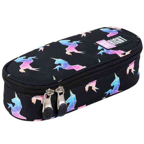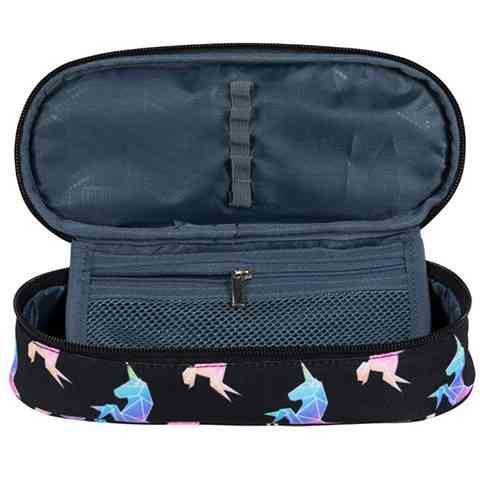 Ez a szuper tolltartó egészen biztos, hogy tetszeni fog a nagyobb diákoknak hiszen már nem gyerekes mesefigurák díszítik, ugyanakkor vagyon jól mutat a tagadhatatlanul unikornisos minta a fekete háttéren. Ovális kialakításnak köszönhetően rengeteg írószer elfér benne, melyek közül a leggyakrabban használt darabokat akár a fedlapra is lehet rögzíteni, így mindig kéznél lesznek majd, amikor csak szükség van rájuk. A hálós zsebbe az apróságok kerülhetnek, hogy azokat ne a tolltartó aljából kelljen majd kitúrni.