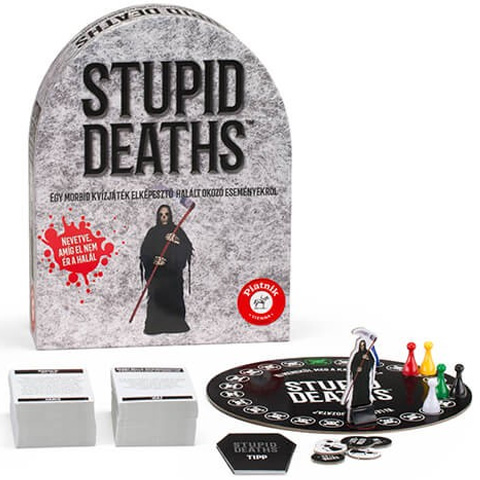 A Stupid Deaths egy morbid kvízjáték elképesztő halált okozó eseményekről, amelyek azonban gyakran mosolyt csalnak a játékos arcára. Ez a kvízjáték az évszázadok során szokatlan és néha abszurd haláleseteken alapul. De felmerül a kérdés: melyek azok az esetek, amik valójában a leírtak szerint megtörténtek, és melyek a pusztán kitalált történetek? Az olvasó felolvas egy történetet, a többieknek pedig meg kell tippelniük, hogy valóban megtörtént eseményről van-e szó. Aki helyesen tippelt az a figurájával előreléphet a játékfelületen, és így megmenekülhet a kaszás elől. A Stupid Deaths játék nagy dózis fekete humorral és morbid történetekkel a végletekig izgalmasnak ígérkezik!