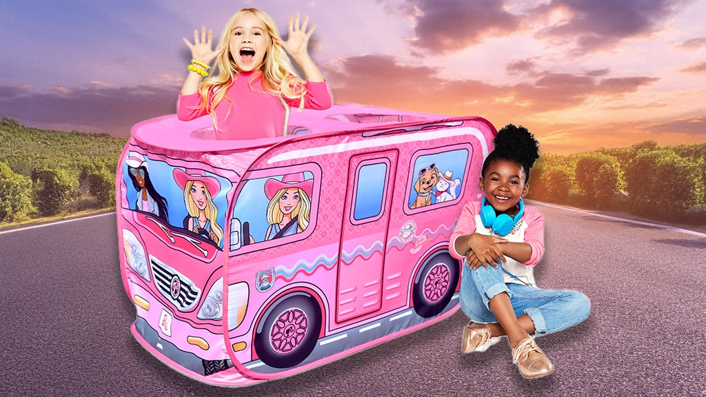 Itt az idő, hogy a Barbie rajongók képzeletbeli utakra induljanak a legújabb játékkal a Sunny Days Entertainment-től. A Barbie Pop-Up Cowgirl Camper egy jármű formájú sátor, amelyen Barbie, barátai, kisállatai és western stílusú minták láthatók. Ez a western lakókocsi témájú játék két nyílással rendelkezik a tetején, valamint egy könnyen megközelíthető ajtóval a hátulján, így a kicsik egyszerűen be- és ki tudnak menni, miközben új kalandokat fedeznek fel. Ez a sátor nemcsak a kreatív játékot ösztönzi, hanem lehetőséget ad arra is, hogy a gyerekek saját kis világukat teremtsék meg, ahol szabadon játszhatnak, álmodozhatnak és barátaikkal együtt élhetik át a Barbie világának izgalmait.