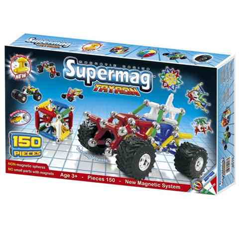 A Supermag mágneses építőjátékok között a Tryron sorozat új elemekkel bővíti az építés lehetőségét, emiatt tökéletes választás azoknak is, akiknek már ismeretlenek a Supermag játékok. Ebben a 150 alkotóelemet tartalmazó készletben a megszokott pálcák és golyók mellett rengetek egyedi darabot, és még kerekeket is találunk. A Supermag mágneses építőjátékai két eltérő méretű pálcákból és több fém golyóból tevődik össze. Az összeállítás közben a mágneses végű pálcákat a fém golyók tartják össze, így különböző érdekes alakzatokat állíthatunk össze, amelyen meglepően nagy stabilitással és szilárdsággal bírnak, ugyanakkor könnyen szétszedhetőek. A különböző Supermag termékek természetesen kombinálhatóak egymással, így akár egy extra nagy készlet is teljes értékűen használható.