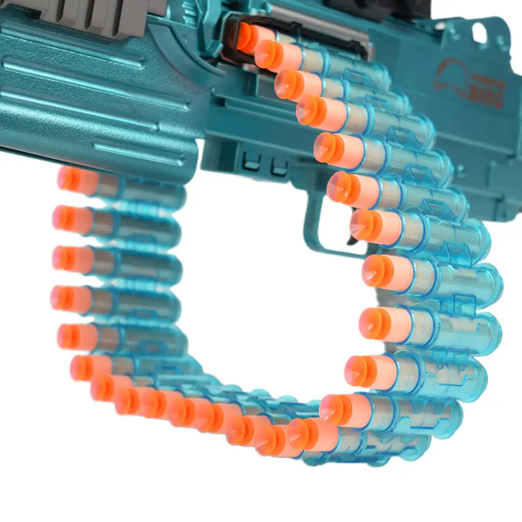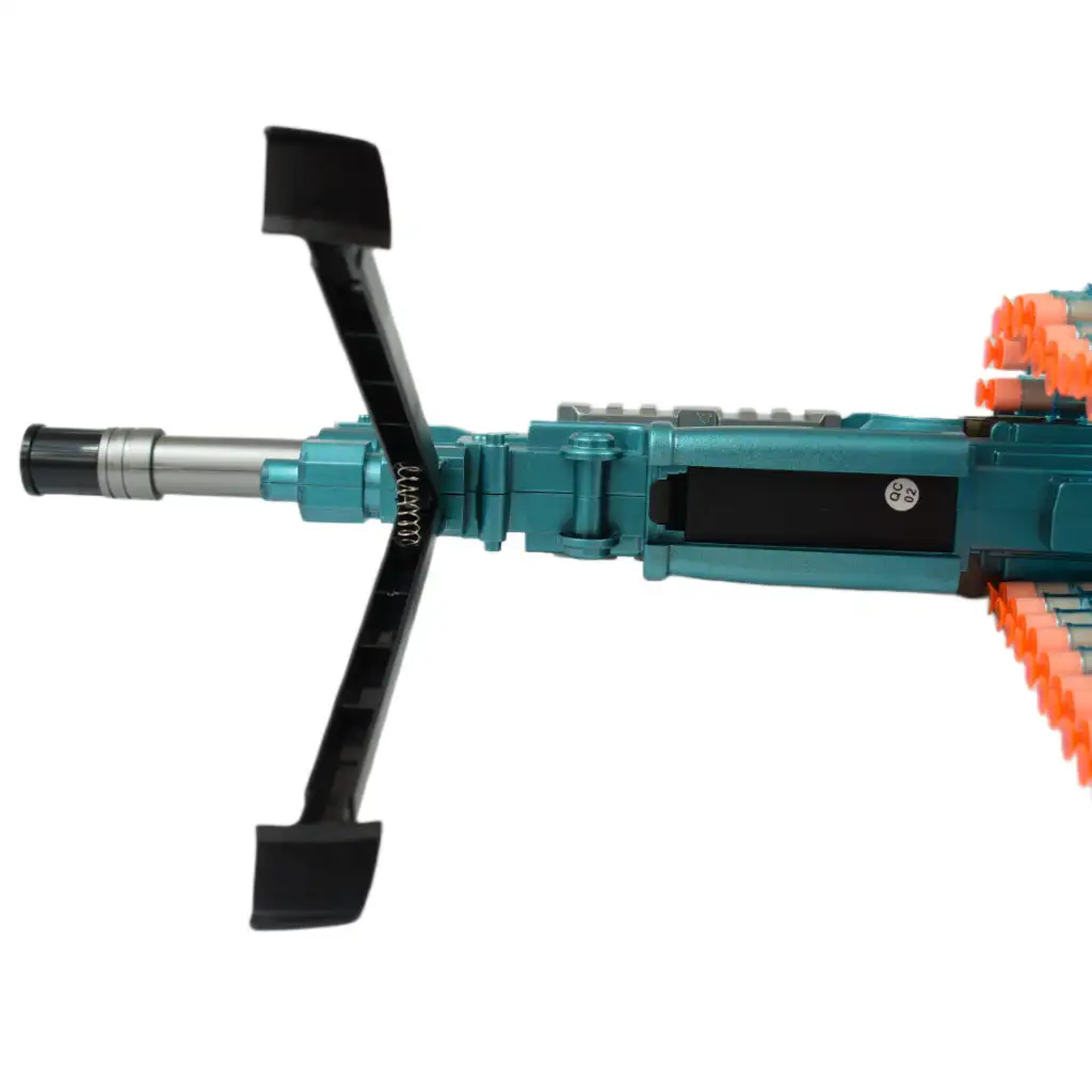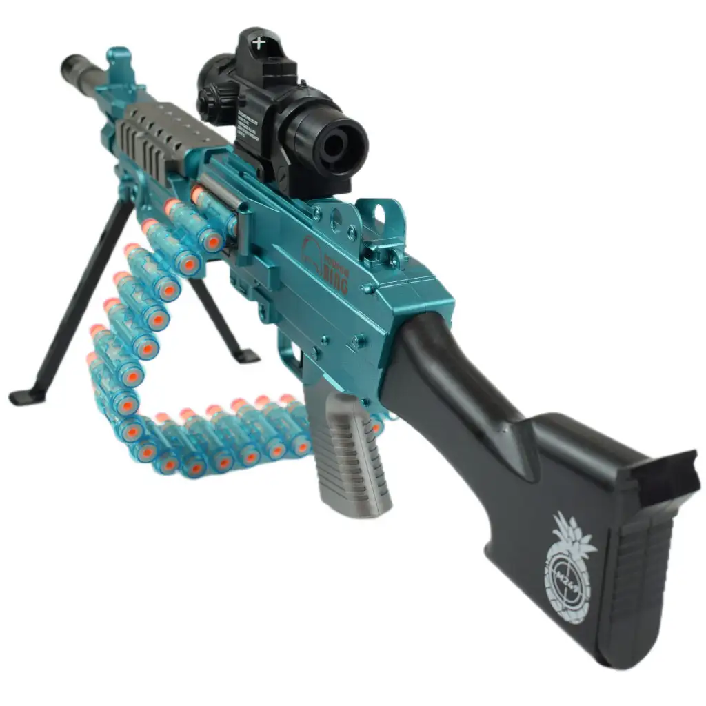 Az M249 gépfegyver szivacslövő játékfegyver valódi izgalmakat és akciókat ígér a kis harcosoknak. A fegyver elektromos sorozatlövő szerkezettel rendelkezik, amely lehetővé teszi a lövedékek gyors és folyamatos kilövését. A készletben található 40 szivacslövedékkel a játékosoknak rengeteg lőszerük lesz a csatákhoz. A fegyver hossza 81 cm, ami egy komoly megjelenést kölcsönöz neki. A mellékelt 26 darabos tár gondoskodik arról, hogy a lövedékek mindig kéznél legyenek. Az M249 gépfegyverhez egy 7.4V 500mAh USB akkucsomag is tartozik, amely hosszabb játékidőt biztosít.
