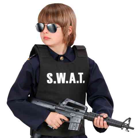 Egy vagány S.W.A.T-os jelmezzel biztos, hogy nagy sikered lesz a következő jelmezverseny alkalmával. Ehhez két szuper kiegészítőre mindenképp szükséged lesz. Az egyik egy szuper sisak, míg a másik egy olyan golyóálló mellény amelyeket a filmekből már jól ismerhet mindenki. Ez a fekete mellény egy fehér S.W.A.T. felirattal pont olyan mint az igazi kommandós rendőrök golyóálló mellénye. Ha egy ilyened van akkor már csak egy fegyverre lesz szükséged, és máris neked lesz a legvagányabb és legkeményebb jelmezed.