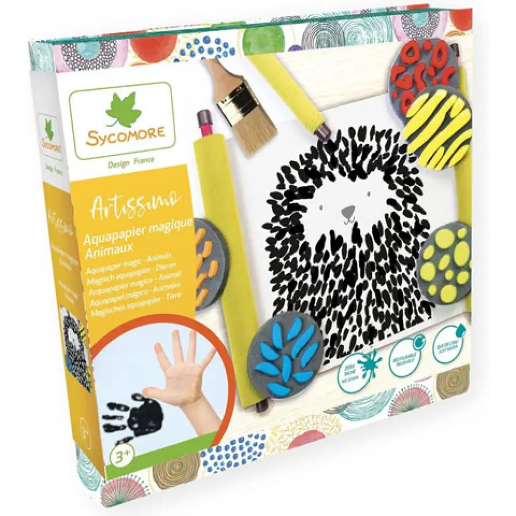Az Artissimo termékcsalád Sycomore termékei nem csak arra remek választás, hogy a gyermekek kreativitását és fantáziáját fejlesszük vele, hanem arra is, hogy megajándékozzuk őket az alkotás örömével. Egy lépésről-lépésre haladó képi útmutató segít majd a gyerekeknek gyönyörű alkotások készítésében a varázslatos aquapapír használatával, mégpedig állatos témakörében. A termékeket úgy tervezték, hogy fejlesszék a gyermek képzeletét és az utánzó játékokat.