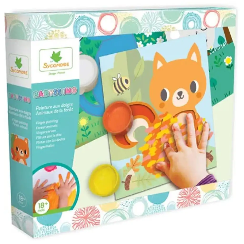A kreatív gyerekek örömmel ismerkednek meg a festészettel, de nem szabad elfeledkezni a kezdetekről sem, hiszen az ecsetek sem önmaguktól születtek, első vonásokat ujjal tették meg egykor az emberek. Ez pedig egy remek kiindulópont a legkisebbeknek, hogy megismerkedjenek a festéssel. Sycomore Artissimo Ujjfestés legkisebbeknek, már 18 hónapos kortól lehetőséget ad, hogy beszálljanak a festegetés mókájába. A doboz 5 izgalmas állatkás képet rejt, akik nagyon várják, hogy kiszínezzék őket. A csomag öt festéket rejt, amit a gyerkőcök az állatokhoz párosíthatnak.