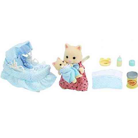 Új érkezőt köszönt ma a Sylvanian Families teljes közössége, hiszen a cica mamának bébije született! A kis cica a kék színű kiságyban pihen éppen, de felébredve biztosan megetetheted őt a cumisüvegből. Az újszülött kiscica a