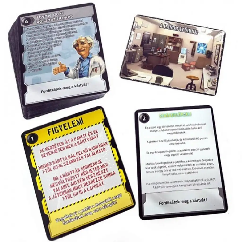 Szabadulópakli egy remek lehetőség, hogy akár a zsebedbe is magaddal vidd a szabadulószobás élményt. A játék alaphelyzete, hogy Dr. Thyme segítséget kér tőletek, de mielőtt elmagyarázhatná a terveit, eltűnik egy csapóajtón, és kis csapatotok foglyul esik laboratóriumában. Vajon ki tudtok-e jutni időben? A lezárt laboratóriumból a Szabadulópakli kártyáin lévő összefüggések felismerésével, az azokon található tárgyak más kártyához való kombinálásával juthatnak ki a játékosok. A feladványok megoldásában segít az is, hogy lassan fény derül a doktor elmondatlan terveire is. Fejtsetek meg rejtvényeket, járjatok a történet végére, használjátok a talált tárgyakat, és ha elég ügyesek vagytok, akkor a siker sem marad el.