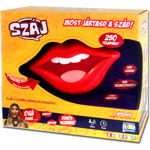 Szórakoztató játékhelyzeteket eredményez majd ez a különleges játék, melyben kizárólag a szájukat kell használniuk aj játékosoknak! A játékosok közül egy valaki lesz a hangutánzó, akinek a Száj megsúgja majd hogy mely szót feladványt kell eljátszania. A többieknek kell majd kitalálni, azonban na hangutánzó kizárólag hangokat adhat ki, sem szavakat, sem mozdulatokat nem használhat hozzá. A mókás játék az egész család számára szórakoztató lesz!