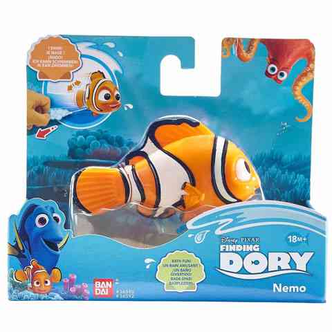 Fürödj együtt a Szenilla nyomában című Disney mesefilm legaranyosabb figuráival, mint amilyen Nemo is, a mindig kedves narancssárga bohóchal, aki nem fél nekiindulni az óceánnak, amikor a legjobb barátjának nyoma veszik. Ezzel a felhúzható fürdőjátékkal egy csöppnyi mesét is a fürdővízbe lehet csempészni, hiszen a madzaggal felhízva a játék pont olyan mozgásba kezd, mint ahogy azt a mesében is láttuk tőle. A fürdéshez most a film többi szereplője is csatlakozhat.
