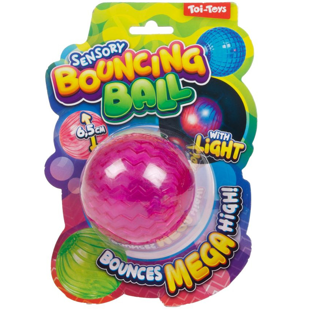 Dobd, pattintsd, világíts – a Toi-Toys Sensory Bouncing Ball pattogó labda garantáltan feldobja a játékidőt! Ez a 6,5 cm-es átmérőjű, színes és átlátszó gumilabda nemcsak elképesztően magasra pattan, hanem ütés hatására világítani is kezd, így még izgalmasabbá és látványosabbá teszi a játékot.