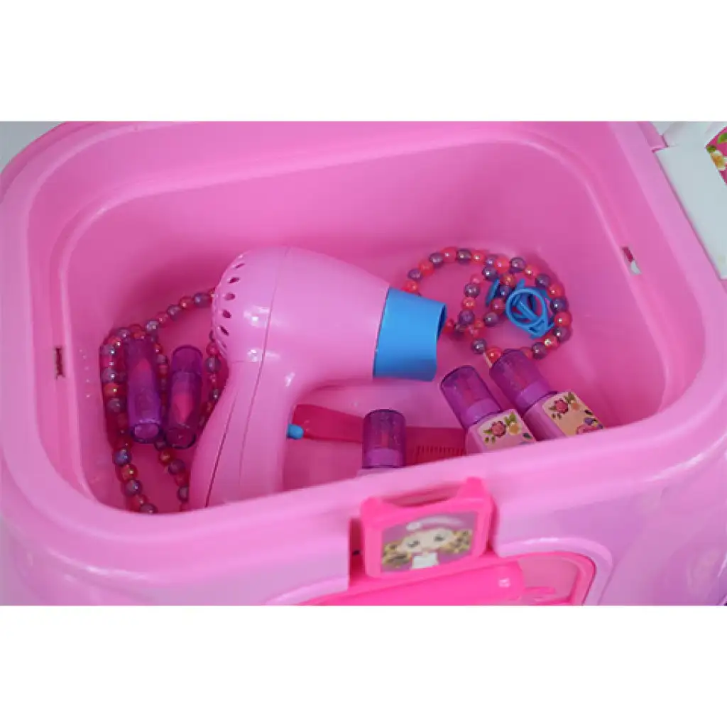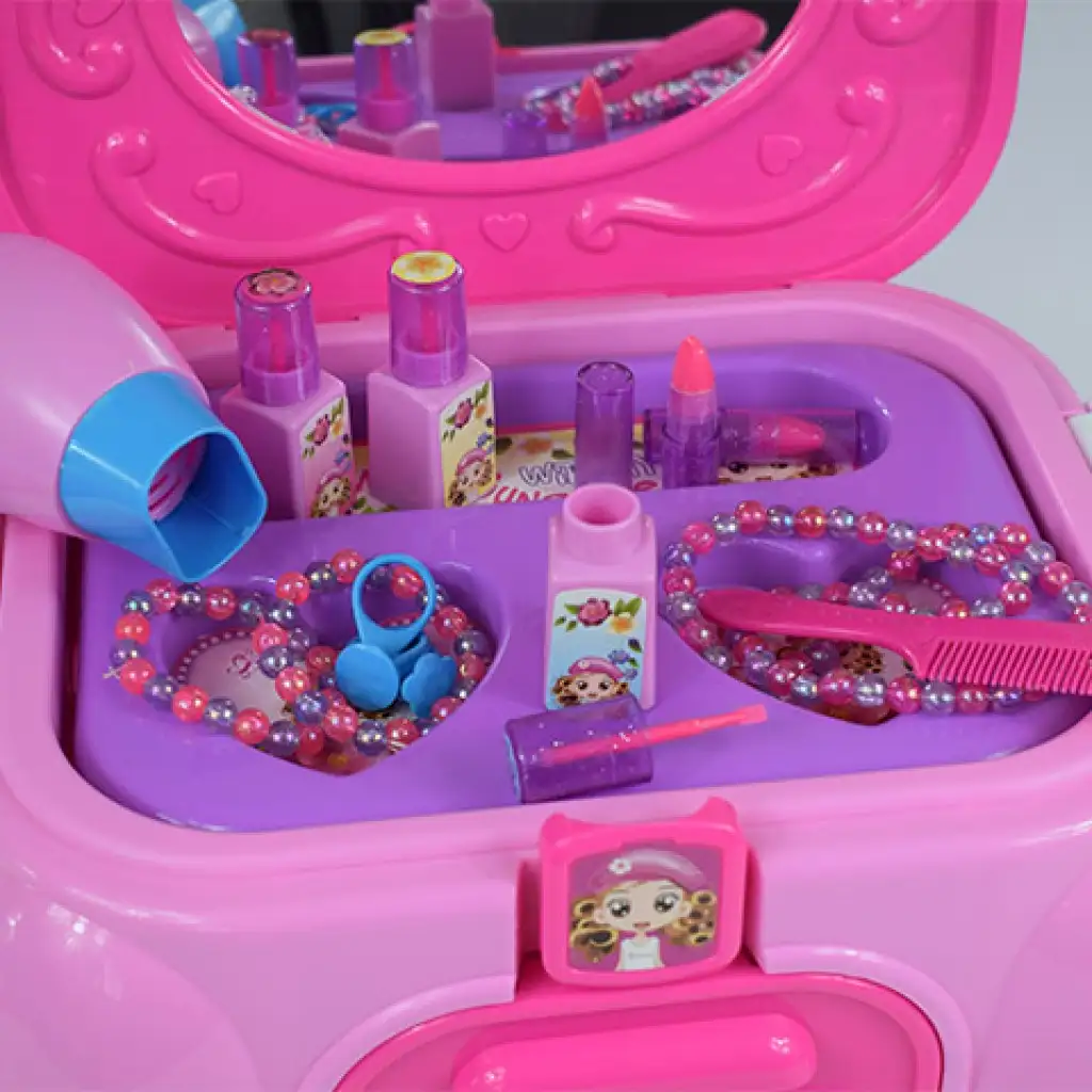 Bemutatjuk neked a lenyűgöző szépség szettet, amely egy multifunkcionális tároló ülőkében érkezik. Ez a rózsaszín színű ülőke nemcsak egy kényelmes helyet biztosít a gyermekednek, de egyúttal egy varázslatos szépség asztal is, ahol kibontakoztathatja kreativitását és stílusérzékét. Az ülőke belső részén egy nagy díszes tükör található, amely tökéletesen illeszkedik a szépség szett hangulatához. Ez a tükör lehetővé teszi a gyermeked számára, hogy magával ragadó frizurákat hozzon létre, vagy elkápráztató sminket készítsen. Így mindig megcsodálhatja munkáját és magabiztosan indulhat útnak. A szett tartalmaz 3 db játék körömlakkot, hogy a gyermeked elkészíthesse és díszíthesse a saját kis körmét. Emellett 2 db játék rúzs is megtalálható, amellyel a gyermeked eljátszhatja a sminkelés élményét. A két karkötő és egy nyaklánc pedig tökéletes kiegészítők a stílusos megjelenéshez. Természetesen nem hiányozhat a fésű és a hajszárító sem, amelyek segítségével a gyermeked fantasztikus frizurákat készíthet és felfedezheti a hajformázás világát. A minőségi anyagoknak köszönhetően a szett tartós és könnyen hordozható, így a gyermeked bárhová magával viheti a saját kis szépségstúdióját. Ez a szépség szett nemcsak szórakoztató játékot nyújt, hanem segít a gyermekednek fejleszteni a kreativitását, a kézügyességét és a stílusérzékét. A könnyen hordozható ülőke lehetőséget ad neki, hogy bárhol és bármikor felfedezze a szépség és divat világát.