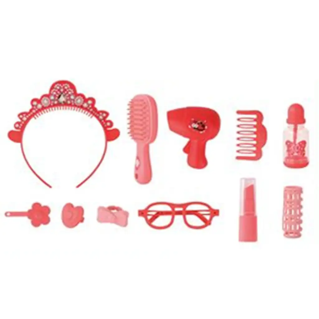 Ez a nagyszerű szépítkező készlet egy praktikus ládában érkezik a kislányokhoz, ami nem csak azt teszi lehetővé, hogy a játékok ne kallódjanak el, hanem pillanatok alatt át lehet alakítani egy smink asztallá, és a lányok azonnal kezdhetnek szebbekké válni. A készletben pedig olyan sminkeléshez és fodrászoláshoz szükséges kiegészítők kaptak helyet, mint a hajkefe, a hajszárító, a különféle csattok és hajcsavarok, az elkészült frizurát pedig a tiara vagy a szemüveg kiegészítők tehetik teljessé.