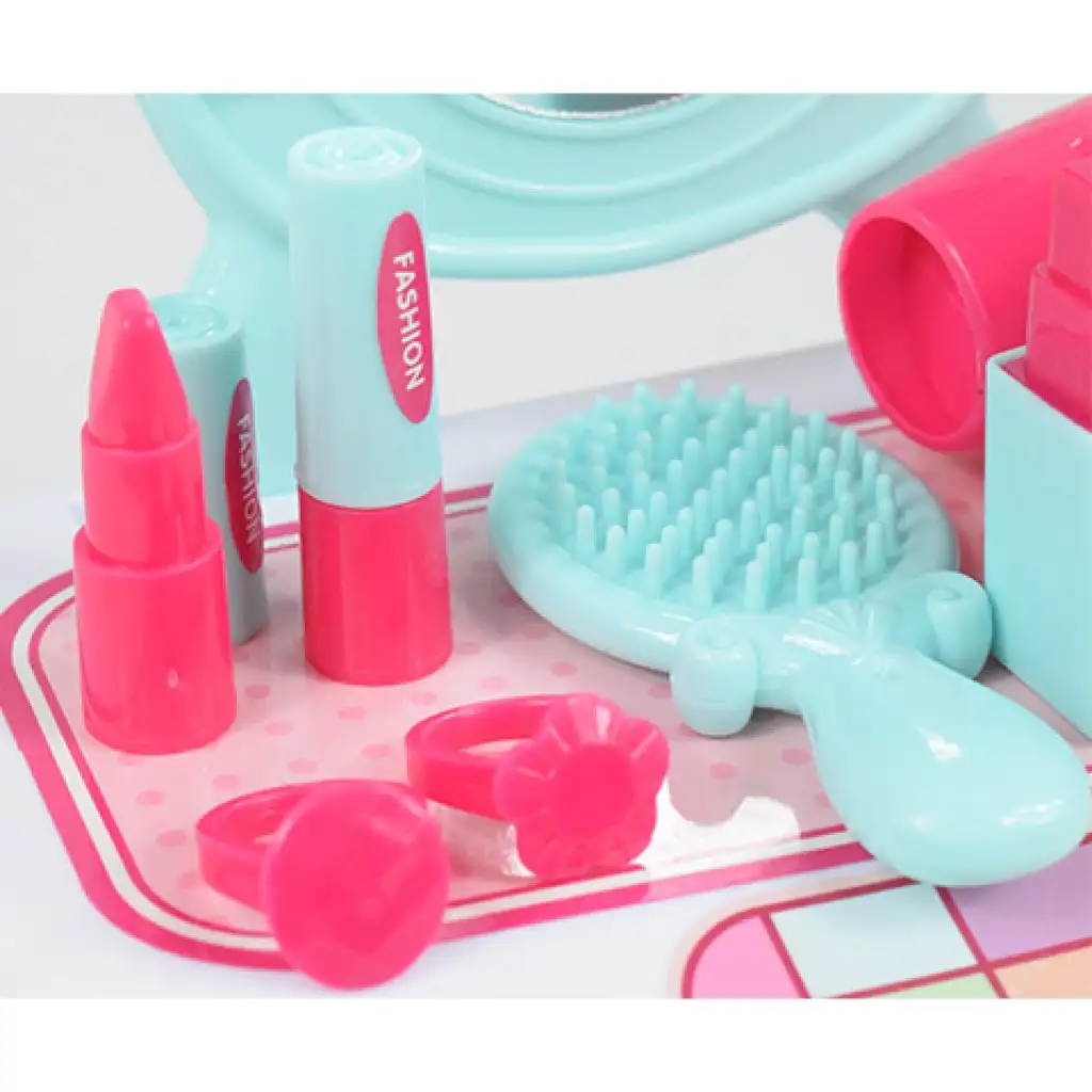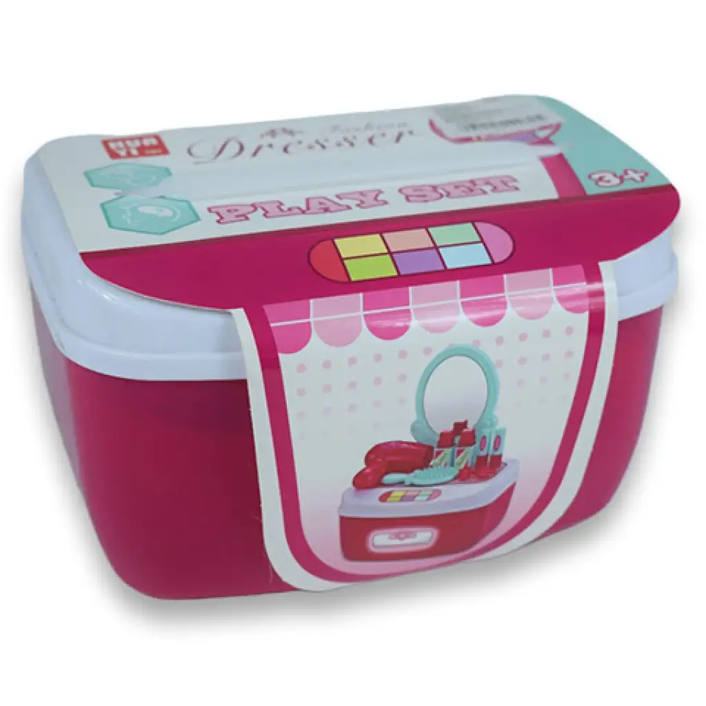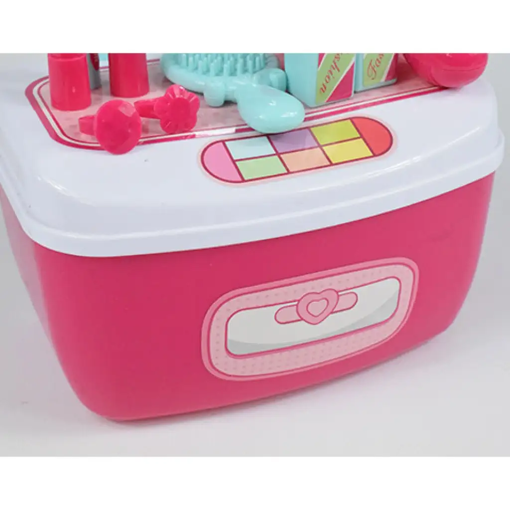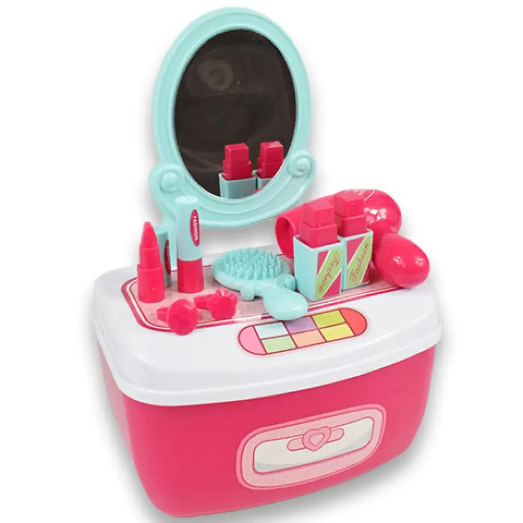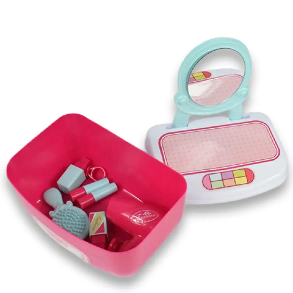 Szépség szett tükrös fésülködő asztalkával és sminkekkel tárolódobozbanSzépség szett tükrös fésülködő asztalkával és sminkekkel tárolódobozban