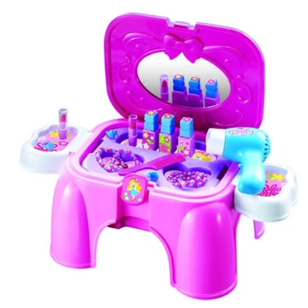 Egy igazi hölgy sehova nem megy el a szépítkező felszerelése nélkül, és most te is magaddal viheted mindenhova a legteljesebb szépítő készletedet. Az egész készlet ügyesen bele lett rámolva egy praktikus ülőkébe, így ha nincs rá szükséged, akkor kényelmesen elüldögélhetsz rajta. Amikor azonban szeretnél kicsit csinosítani magadon, elég felhajtanod az ülőke fedelét, és máris feltárul a csodálatos szépítkező készlet. Megtalálsz itt mindent, a hajszárítótól kezdve, az ékszereken keresztül a körömlakkokig és rúzsokig.