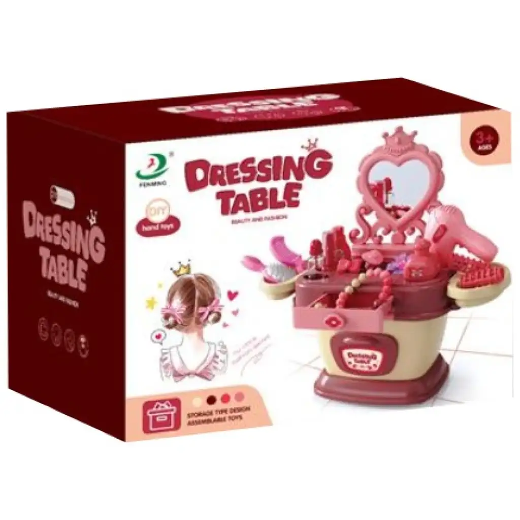 A gyerekek tetszését biztosan elnyeri majd ez a különleges szétnyitható szépítkező asztal szett. A doboz mélyén számtalan ékszer található, melyekkel könnyen és gyporsan feldobhatod megjelenésedet. A doboz teteje praktikusan kinyitható és egy szempillantás alatt szépítkező asztallá alakítható, melyen még egy szív alakú tükör is helyet kapott. Az asztalka tetejébe különböző tárolók és még egy fiók is van. A szett összesen 58db-os.