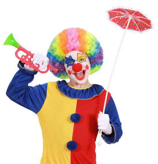 A bohócokat a jókedv, a viccelődés a határtalan nevetés és a szórakoztatás jellemzi. Egy igazi bohóc elengedhetetlen kelléke a színes és göndör bohócparóka. Fesd ki magad, tegyél az orrodra egy piros bohóc orrot, rúzsozd pirosra a szád és öltsd fel magadra a vicces parókát. Szórakoztató és megnevettető fénypontja lehetsz az estének, a farsangi bulinak egy megnyerő és élethű bohóc jelmez segítségével.