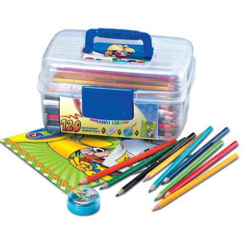 Ebben a hatalmas készletben garantáltan megtalálod a színes ceruzákból csak létező összes színt. A készlet egy áttetsző műanyag bőröndöt tartalmaz, melybe 120db különböző színű ceruzát találsz. A készlet még egy színezőt, egy faragót és egy radírt is tartalmaz. Ezzel nem lesz gond megtölteni a tolltartódat a sulikezdésre és még marad is benne bőven, melyeket otthon használhatsz! A bőrönd segítségével az egész készletet könnyen szállíthatod, kényelmesen meg tudod ragadni a kihajtható fülnél.