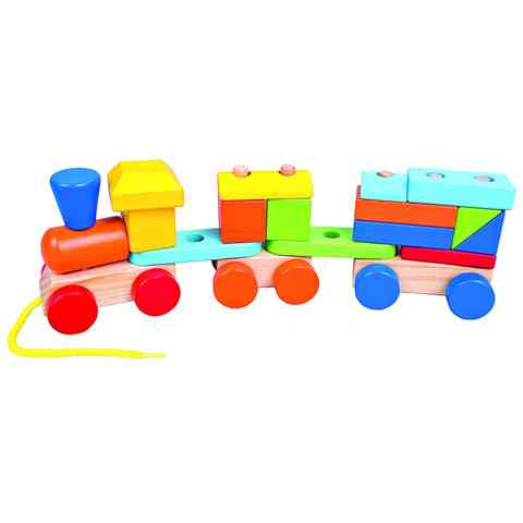 Színes építhető fa vonatSzínes építhető fa vonat