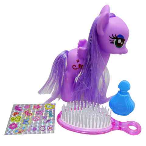 Melyik kislány ne szeretne magának egy cuki kis pónit, akivel kedvére játszhat, és amikor csak akarja megfésülheti a sörényét. Ebben a csomagban pont egy ilyen cuki kis pónit találhatsz, akinek a hosszú sörényét és farkát bármikor kedvedre kifésülheted és ha elég ügyes vagy, akkor akár még fonatokkal is díszítheted. A készletben természetesen találsz egy fésűt, és egy parfümös tégelyt is. Ráadásul a csomagban egy ív matricát is találsz, amiről kedvedre választhatsz mintát, ami a pónira ragaszthatsz díszítés gyanánt.