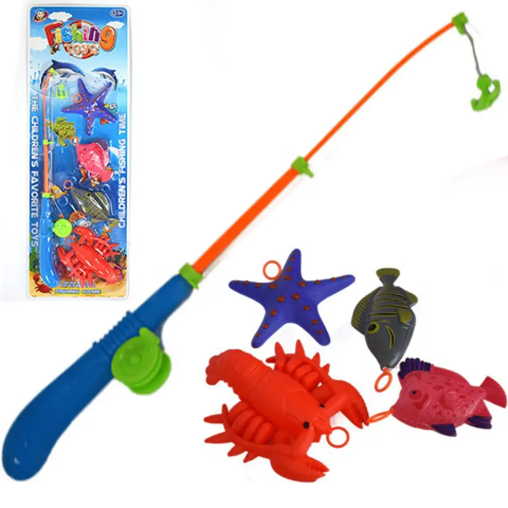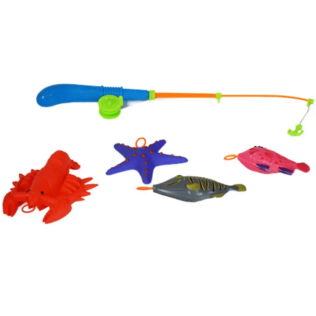 Színes horgászjáték tengeri állatokkal és horgászbottal