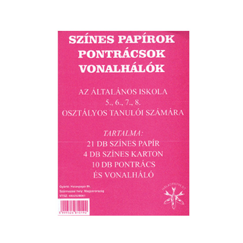 A felső tagozatosok tanulásához, a tananyag megértéséhez szükséges segédeszköz ez a csomag, mely nem csupán színes lapokat tartalmaz, hanem az asló tagozatból jól ismert pontrácsos és vonalrácsos lapokat is, természetesen a felsős tananyagnak megfelelő változatban. A színes papírok egyéb kreatív célokra is alkalmasak. A készlet zacskós csomagolású, mely a kisebb mechanikai hatásoktól védi a készletet.