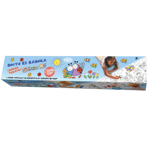 Jó ötlet, hogy tekercsben van. Kis helyen elfér, többen is színezhetik egyszerre, ha hosszan kihúzzuk. Ráadásul Bogyó és Babócás.