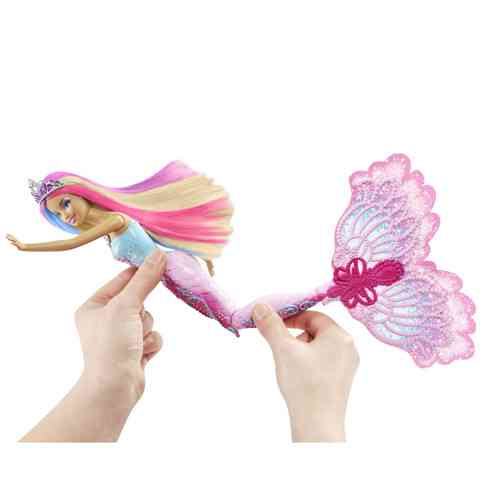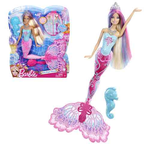 Merülj te is a vízbe mint ahogy ez a színváltós Sellő Barbie teszi az ő kis vízi barátjával! Nézd ahogy a hideg víz, és a meleg víz más-más színűre változtatja Barbie kinézetét. A sellő teste két helyen is meghajlítható, így valódi úszómozgást lehet vele bemutatni, vagy többféle pozícióba is állítható, akár le is ültethető.