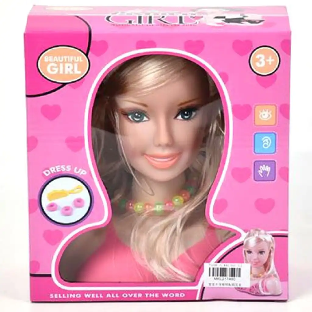 Szőke hajú fésülhető babafej fésűvel és nyaklánccalSzőke hajú fésülhető babafej fésűvel és nyaklánccal