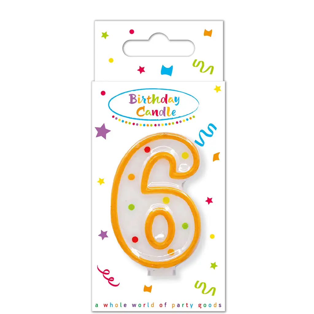 Készülsz a kisgyermeked hatodik születésnapjára? Akkor ez a vidám, pöttyös 6-os számú szülinapi gyertya tökéletes választás lesz a tortára! A gyertya fehér alapon színes pöttyökkel díszített, ami azonnal ünnepi hangulatot teremt. Az élénk narancssárga szegély még jobban kiemeli a formát, és bármilyen stílusú tortához illik, legyen szó házi sütésről vagy cukrászdai mesterműről.