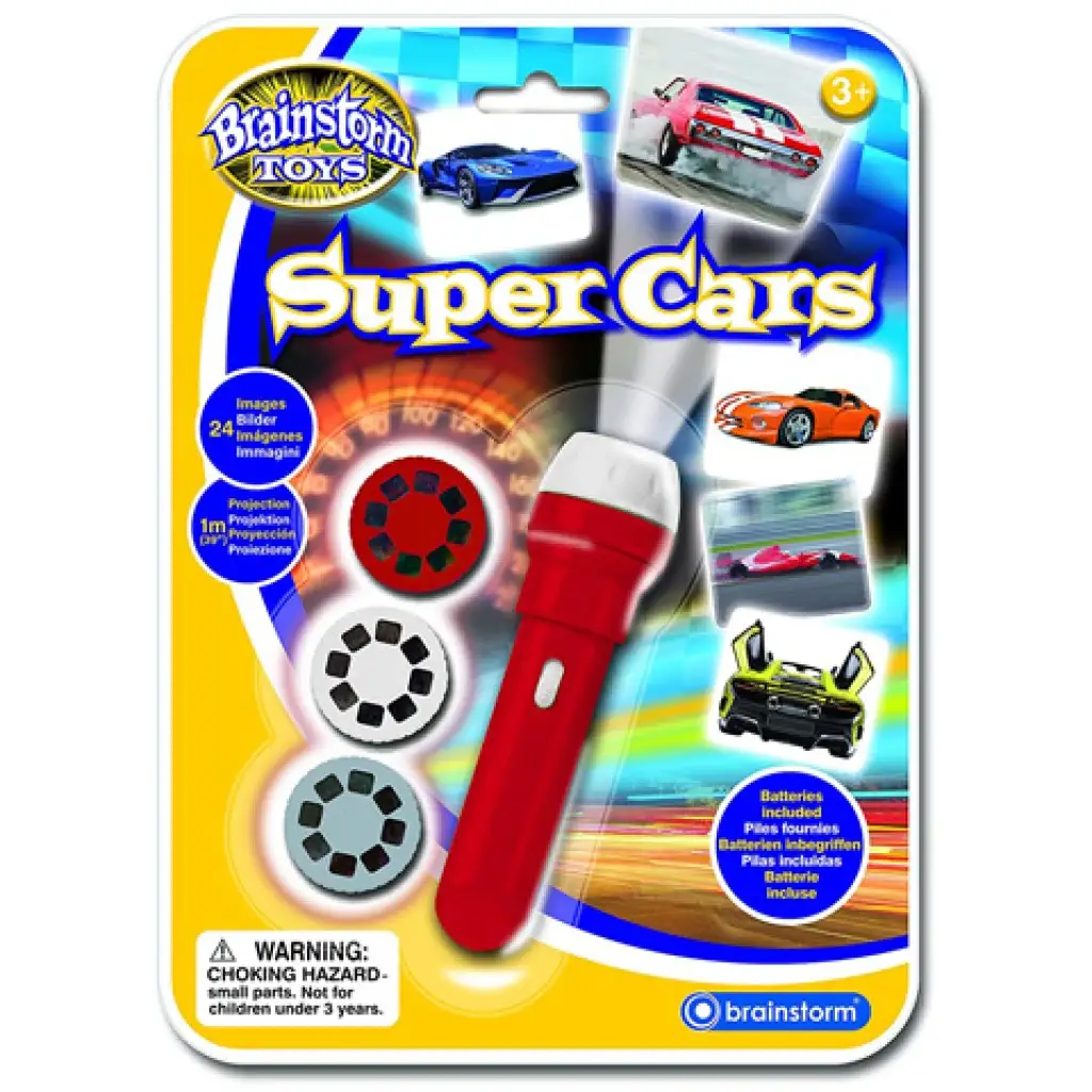Rajongasz az autókért, és különösen sportkocsik tetszenek? Akkor ez a szuper kis lámpa egészen biztos elnyeri a tetszésedet, hiszen olyan vagány sportkocsikat vetíthetsz vele a falra, mint a Ferrari, a Dodge vagy a Lamborghini. A Brainstorm Toys kivetítő zseblámáit igen egyszerű használni, hiszen csak a megfelelő helyre kell illesztened a korongot, amin nyolc kép található, és be kell kapcsolnod a lámát. Az erős fényű led-nek köszönhetően a lámpa fénye a falra vetíti a korong látható képet. A korongok egyszerűen cserélhetőek, a lámpa pedig 3db LR44 gombelemmel működik, amit a készlet tartalmaz.