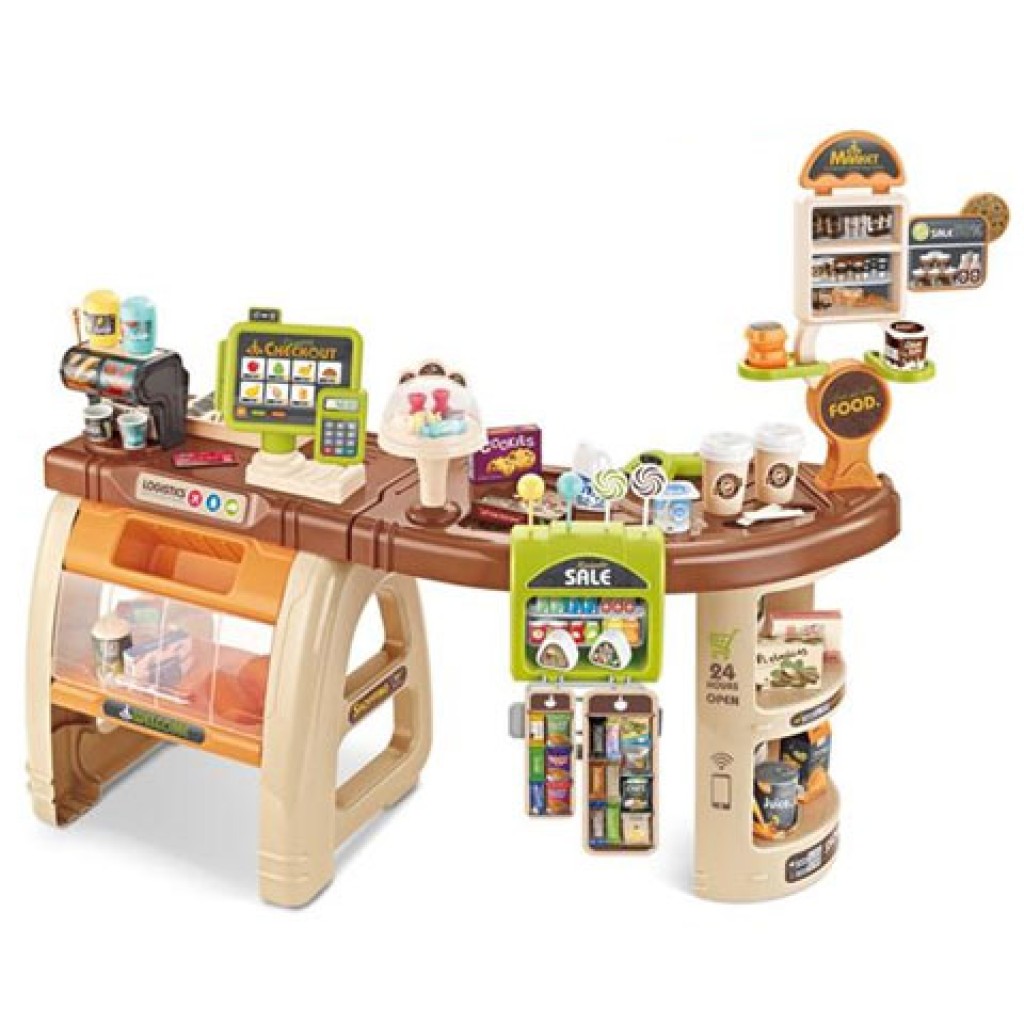 Gyermekednek keresel egy különleges játékot, mely biztosan tetszeni fog majd gyermekednek? Ebben a szettben most egy szupermarket lehet gyermekedé, melyhez egy egész pult tartozik. A szettben lévő pulton egy játék pénztárgép is megtalálható, valamint egy mérleg. Ezen kívül kávégép, lentebb egy hűtős szekrény, a pult másik felén pedig a többi termék, melyet megvásárolhat gyermeked a boltban. A szett összesen 52 db kiegészítőt tartalmaz, melyekkel rengeteget lehet játszani. A pulton lévő scanner gombját lenyomva csipog, valamint még fény hatást is képes kiadni a bevásárló pult, szerezd be hát gyermekednek és az egész család együtt játszhat majd benne.