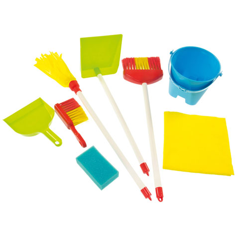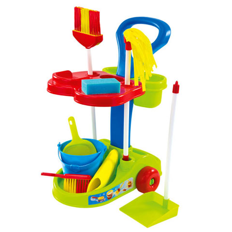 Egy nagyon részletesen kidolgozott takarító szettet szerezhetsz most be gyermekednek, ami nagyon jó tanító jellegű is lehet, közben pedig még jól is érzi majd magát gyermeked. A szettben egy húzható takarítós kocsi található, amiben mindennek megvan a saját maga helye és minden megtalálható benne, ami csak kellhet egy takarításhoz. Egy nagyon praktikus lapát, felmosó, seprű, kis lapát, kefe és még felmosó vödör is van benne, ráadásul a kocsi fogójánál még egy tároló edény is van. Színes, élénk kivitelezése vidám hangulatot áraszt magából.