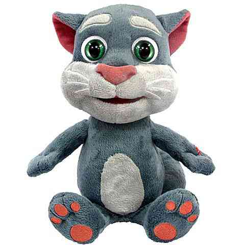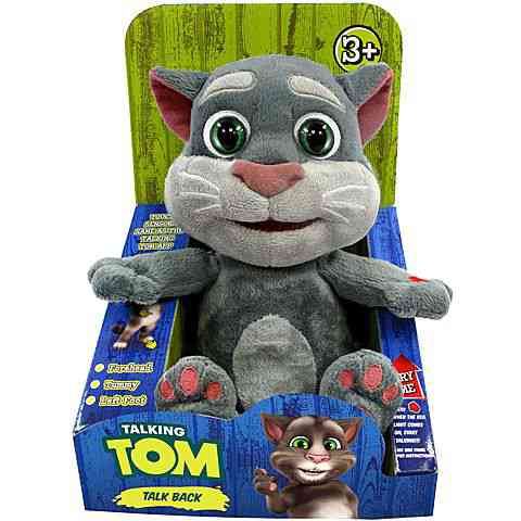 A népszerű alkalmazás-játék most előtted elevenedik meg! Talking Tom, a mókás macska interaktív plüssfigura formájában érkezik hpzzád, akivel rengeteg nevetés és jó hangulatú játék vár. A plüss kezét megnyomva piros lámpa kezd világítani, ez jelzi hogy a hangokat maga körül felveszi. Amint elalszik a piros jelzőfény, Talking Tom máris visszamondja a rögzített mondatokat, a maga nyávogó vékony hangján! Talking Tom fejét ütögetve pogozó hangokat ad, valamint hasát és lábát nyomkodva is jellegzetes hangeffektekkel szórakoztat.