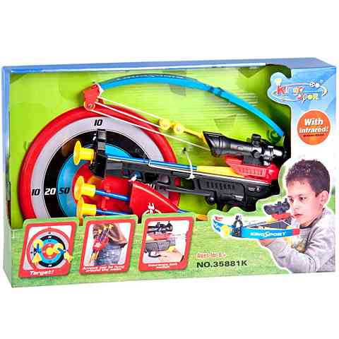 Valódi íjpuskával veheted célba a különböző mezőkkel ellátott céltáblát, hogy fejleszd képességeid! Tapadókorongos heggyel ellátott nyílvesszőiddel a céltáblára célozhatsz, melynek felületén megtapad a nyíl, így pontosan láthatod mennyire céloztál ügyesen. A cél a tábla közepébe lőni a nyílvesszőt, hiszen ez éri a legtöbb pontot. Légy igazi vadász, aki egyetlen lövéssel pontosan a célba talál! Az íjpuska gyerekek számára ia könnyen használható.