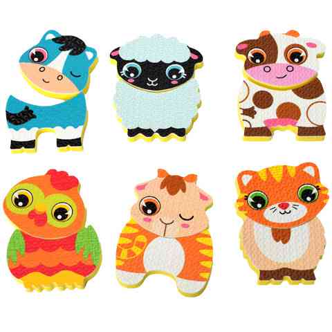 Ez a remek játék egyszerűsége ellenére nagyon sokféle módon tanítja és szórakoztatja a gyerekeket. Elsősorban a legjobb móka, hogy a különleges habszivacs anyaga miatt könnyedén feltapad a csempére vagy a kád oldalára, így fürdés közben lehetőség van kidekorálni a fürdőt, ugyanakkor nem hagy maga után nyomot, így nem ró extra takarítást a szülő nyakába. Természetesen a játék remek lehetőséget kínál a kicsiknek, hogy megtanulják a tanyavilág állatait, később pedig megpróbálkozhatnak az egyes állatok fejét és test összepárosítani.