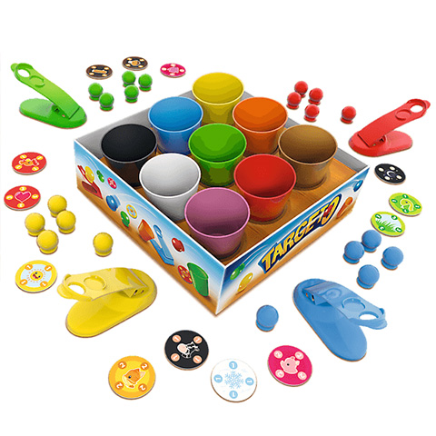A Targeto egy szuper ügyességi játék, ami az egyszerű szabályaival és a szórakoztató játékmenetével garantáltan a gyerekek egyik kedvence lesz. A játék egyik legjobb vonása, hogy a szabályok nagyon egyszerűek. Csak annyit kell tenned, hogy válaszd ki a katapultodat és a játékosaidat, és kezdődhet az őrült játékok egyike. Válaszd ki a számodra szimpatikus játékverziót a szabálykönyvben található öt különféle játékmenet közül. Próbáld megjegyezni a poharak színét, imitálj állatokat, versenyezz a pontokért vagy tedd megfelelő sorrendbe a bábukat. megannyi különféle játék, ami egyetlen dobozban elérhető egy remek magyar nyelvű játékszabálynak köszönhetőn.