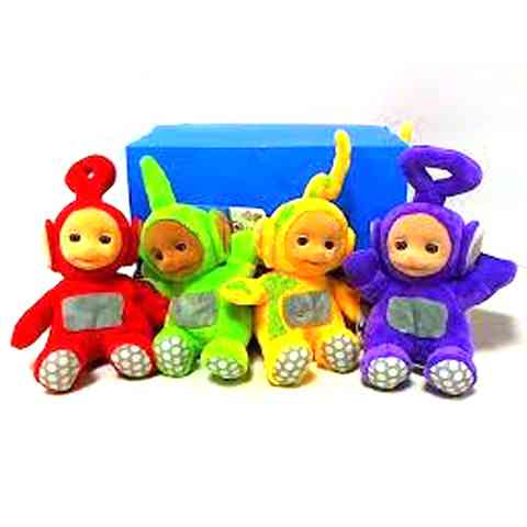 A négy különböző színű, földönkívüli, csecsemőszerű lény kalandjai erőszakmentes és vidám szórakozást, valamint játékos ismereteket nyújtanak az egy és négy év közötti korosztálynak. Azonban most itt a nagyszerű lehetőség, hogy a gyerekek számára a kedvenceik kézzelfoghatóvá váljanak. A tizenöt centiméteres plüss figurák a legpuhább anyagból készültek, így nem csak játszani, de aludni is lehet velük. A lila Tinky Winky, a zöld Dipsy, a sárga Laa-Laa és a piros Po Teletubbies figurák garantáltan a kicsik kedvencei lesznek.