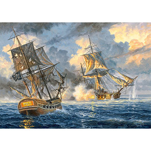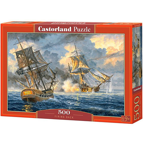 A tengeri csata névre keresztelt puzzle egy igazán mutatós festmény alapján készült, ami két vitorláshajó lőporfüstös tengeri összecsapását ábrázol, azonban ahhoz, hogy megcsodálhassuk a képet előbb mind az ötszáz darabját össze kell illesztenünk, ami remek kihívás a tíz éves gyerekek számára. A Castorland puzzle a kiváló minőségű nyomtatási technológiának köszönhetően éles és élénk színű képeket eredményez, a puzzle elemek pontosan illeszkednek, így az elkészült kép bármely szoba legszebb dísze lehet.