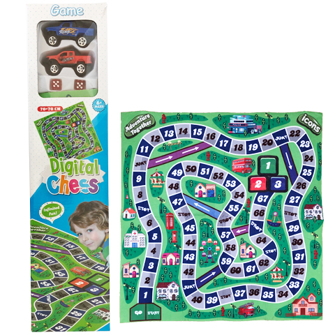 Ez a nagyméretű játszószőnyeg egy komplett kisvárost ábrázol és a kacskaringós útvonalán található számoknak köszönhetően társasjátékként is kiválóan használható. A nagy méertű, textilfilcből készült szőnyeg 70x70cm-es, amely kiválóan alkalmas egy izgalmas társasjáték lejátszására. A játékot ketten játszhatják és a szettben található terepjáró autókat használhatják bábuként. A játékszabály egyszerű, akár egy, akár két dobókockával játsszátok annyit kell lépned a pályán, amennyit dobtál, de vigyázz, ha visszaesel a lejtőn csak 6-os dobással tudsz tovább haladni. A szórakoztató társasjátékot az egyszerű szabályainak köszönhetően kicsik és nagyok egyaránt élvezhetik.