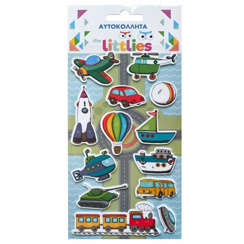 The Littlies: Járműves 3D pufi matrica szett 10x22cm-es íven