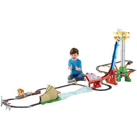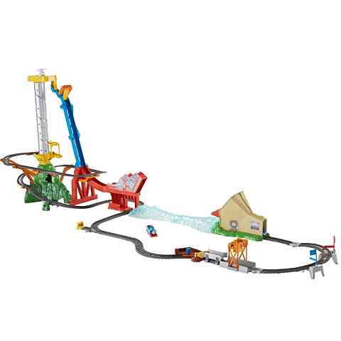 Hatalmas pályaszettel egészítheted ki a Thomas Track Master gyűjteményedet, melynek különleges elemei feldobják a játék hangulatát! A kanyargós sínpályára helyezve a motorizált mozdonyt Thomas egy lifthez jut, mely spirálszerűen viszi fel a magasba. Ezután pedig jöhet a pálya leglátványosabb eleme, hiszen Thomas előbb zuhanásba kezd a rámpán, majd hatalmas ugratással a szakadék túlsó partján ér földet! A gyerekek imádni fogják a látványos ugratást, melyet újra és újra láthatnak, akár más, már meglévő Track Master mozdonyaikkal. Helyezd a mozdonyt a pályára és figyeld mekkorát ugrat a szakadék felett!