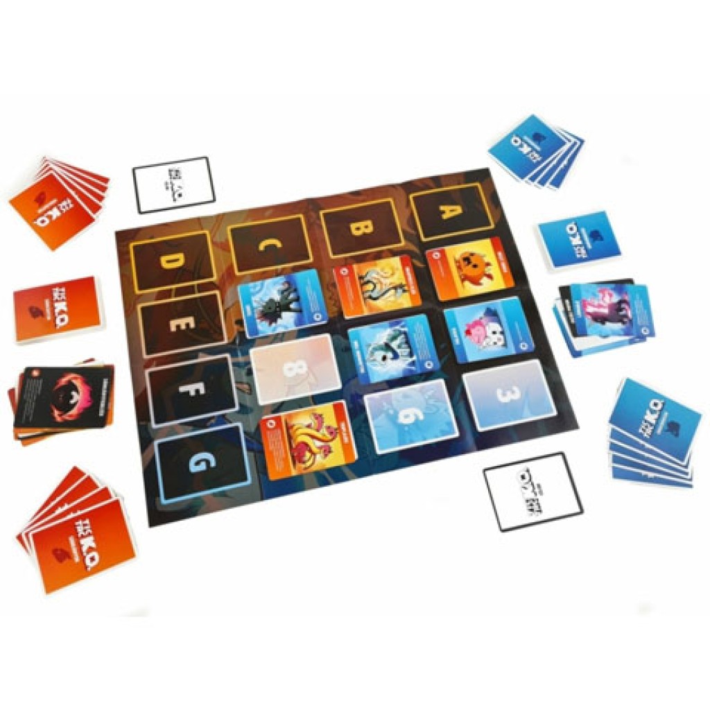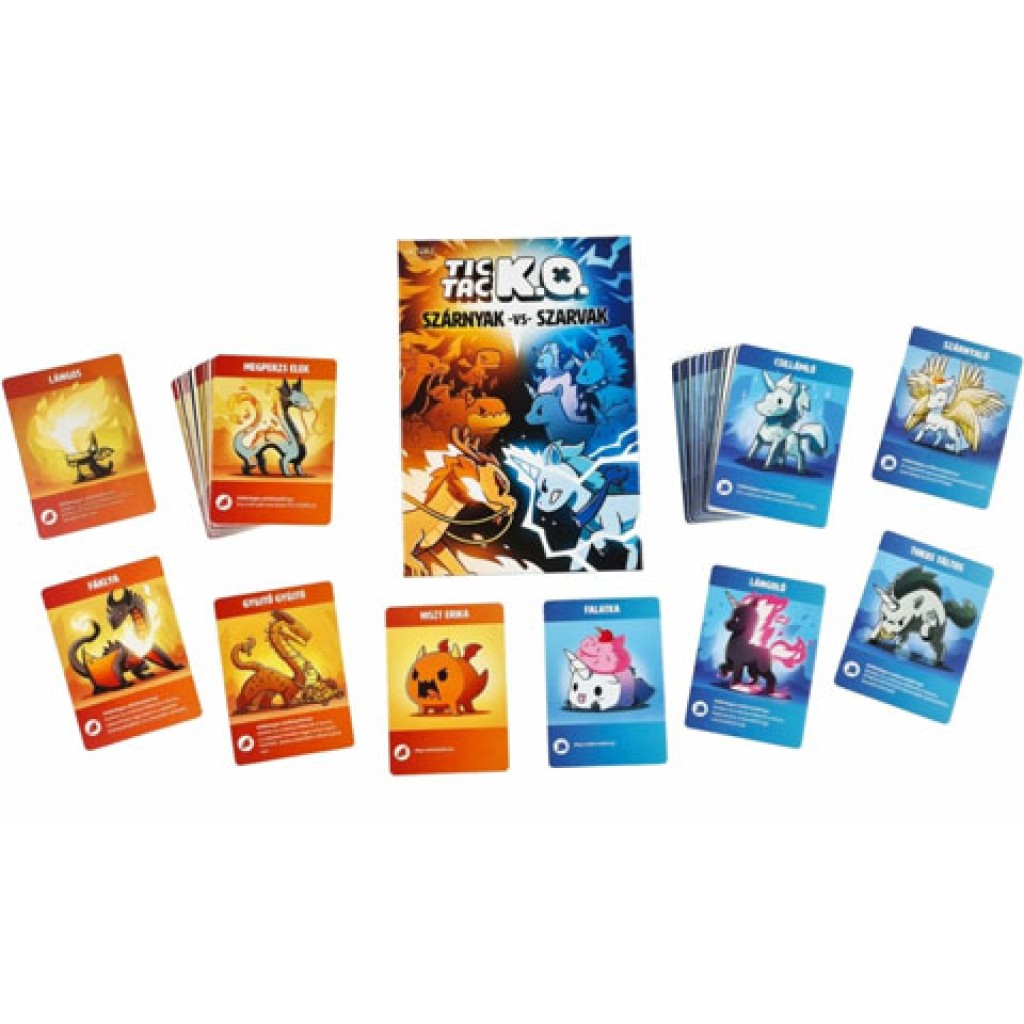 A Tic Tac K.O. egy gyorsan megtanulható kártyajáték, amely ördögi fordulatot ad a Tic Tac Toe-nak, és lehetővé teszi, hogy az ellenfeleket oldalba vágd, miközben a győzelemre törekedve négyzeteket foglalsz el. Ezek az imádnivalóan kegyetlen sárkányok és egyszarvúak nem haboznak, hogy tűzzel, villámmal vagy egy gyors rúgással elpusztítsák ellenfeleiket. A Tic Tac K.O.-ban két csapat küzd a rács irányításáért az ördögi sárkányokat és könyörtelen egyszarvúakat ábrázoló karakter- és varázskártyák kijátszásával. A játékosok egyenként rakják le a kártyákat a tic-tac-toe rácsra, hogy megfeleljenek a célkártyáikon lévő mintának. Az a csapat, amelyik elsőként teljesít 3 célt, megnyeri a játékot!