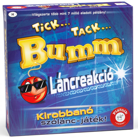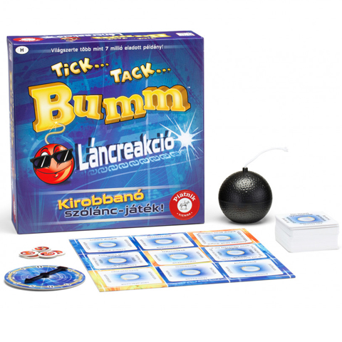 A Láncreakció a közkedvelt Tick Tack Bumm társasjáték egy újabb és izgalmasabb változata. A klasszikus játékmenet annyival lett megbolondítva,hogy folytatni kell a szóláncot miközben a bombát tovább kell adnunk. Az elhangzott szó utolsó betűjével kell egy új szót mondanod az egyik szabad kategóriához, de csak akkor találod meg a megfelelő szavakat, ha megőrzöd a nyugalmadat és tiszta fejjel gondolkodsz! Ebben az őrületes versenyben folyamatosan gyorsnak és válaszra késznek kell lenned. A bomba folyamatos ketyegése, az idő szorítása elég nagy feszültséget okoz, és ehhez még vegyük hozzá a hirtelen irányváltoztatást a játékban. A Tick Tack Bumm Láncreakció egy vidám kommunikációs partyjáték az egész család számára!