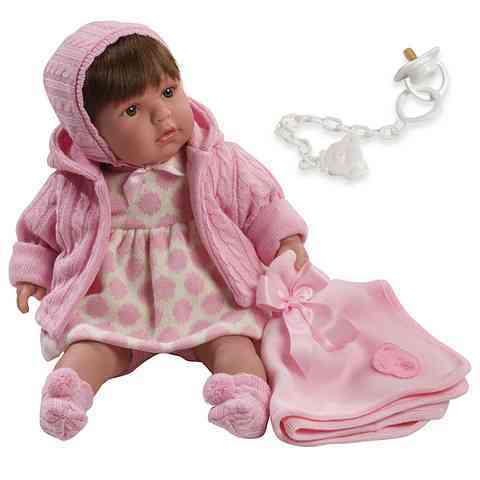 Tina a barna hajú és barna szemű játékbaba lesz ezentúl a legjobb barátod. Vidd magaddal ha sétálni indulsz és mutasd meg a játszótéren mindenkinek milyen gyönyörű babád is van. Teste pihe-puha textilből arca és végtagjai pedig gyermekbarát, kellemes tapintású műanyagból készültek. Rózsaszín pöttyös ruhácskában, kötött kardigánnal, sapkával, zoknival és takaróval együtt szállítjuk, így ha szeretnéd bátran öltöztetheted is őt. Tinat ráadásul egy különleges funkcióval is ellátták, aminek köszönhetően képes a sírásra és a papa-mama szavak kimondására is, de ha a cumiját a szájába helyezzük akkor azonnal csendben marad.