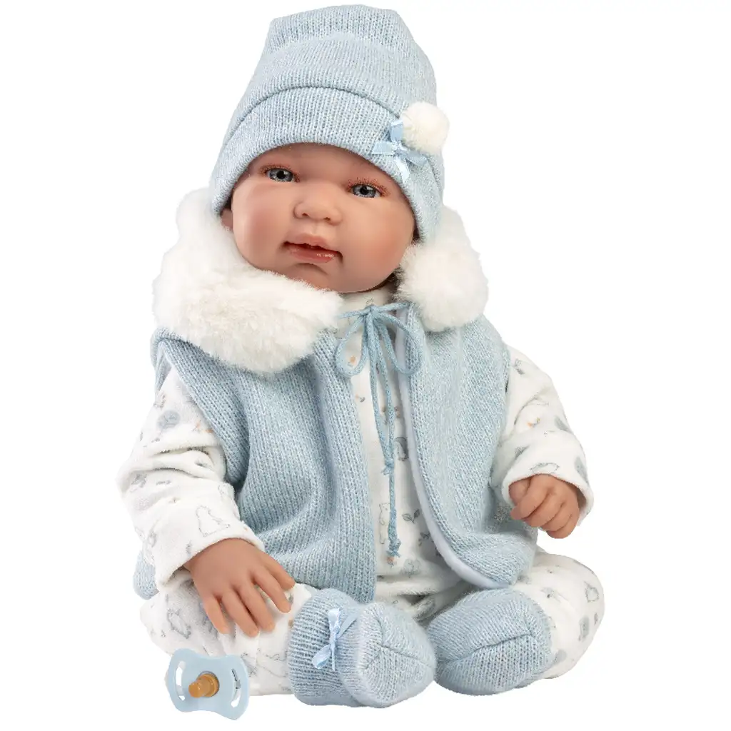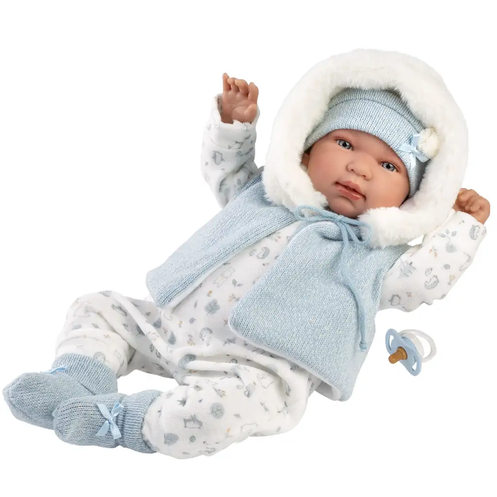 Llorens: Tino 44cm-es újszülött baba cumival kapucnis mellénybenLlorens: Tino 44cm-es újszülött baba cumival kapucnis mellényben
