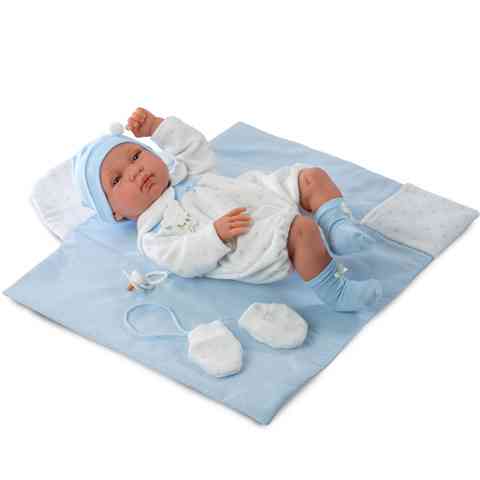 Tino újszülött fiú baba pléddel kék ruhában 43cm-es - LlorensTino újszülött fiú baba pléddel kék ruhában 43cm-es - Llorens