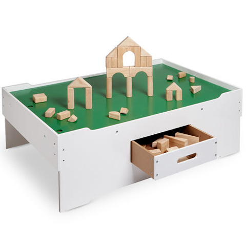 Egy olyan szuper kis asztallal dobhatod fel a gyerekszobát, amit már a tervezés során a játékok szempontjából alkottak meg. A masszív kis asztal kellőképp nagy felülettel rendelkezik ahhoz, hogy a legkülönfélébb játékok is kényelmesen játszhatók legyenek raja, így egy fa vasútvonalat épp úgy összeállíthatsz rajta, hogy egy nagyobb puzzlet, vagy akár bármilyen társasjátékot. Természetesen az asztal egy nagyméretű fiókkal is rendelkezik, amiben bárit tárolhatsz az építőkockáktól a kisautókig. Az asztal összerakásához egy felnőtt segítségére lesz szükség, de utána már olyan játék kerülhet rá, amilyet csak akarsz.
