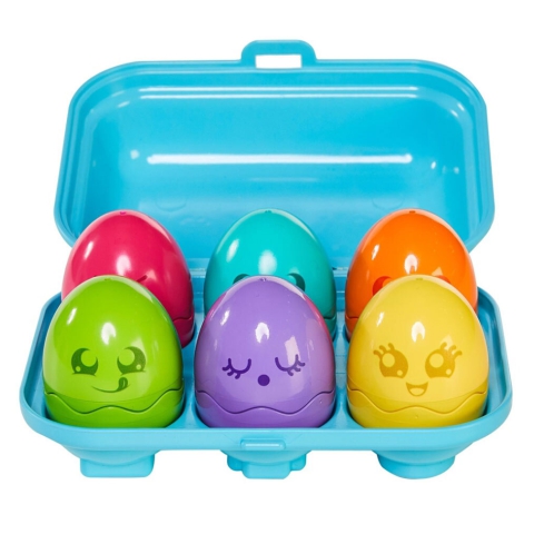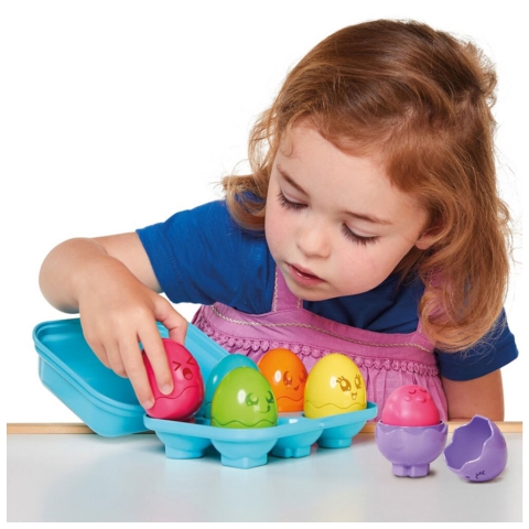 Ez a cuki Toomies szett nem csak szórakoztató, de még remekül fejleszt is. A Toomies kiscsirkék tojásainak alján egy-egy egyedi forma található, melyeket pontosan kell majd beleilleszteni a tojástartóba ahhoz, hogy aztán azt be lehessen csukni. A Tomy Toomies tojáskaland játékok segítenek fejleszteni a logikai készségeket, a finom motoros mozgásokat és a problémamegoldó képességet is. A tojások kinyithatóak, mindegyikben egy-egy kedves kiscsibe bújik meg, melyek megnyomva csipognak. Lehet őket kevergetni és szín szerint párosítani is.