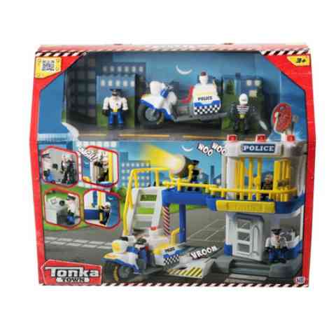 Ha bármi gond van Tonka városban, a rendőrállomásról a rendőrök azon nyomban ott teremnek, hogy megoldják. Állj ki a motorral és eredj a bűnöző nyomába, akit éppen egy bankrablás helyszínéről menekül! Vidd be őt az őrsre és zárd be a tömlöcbe, ahonnan nem tud majd megszökni. A Rendőr állomás játékszett tetején lévő gombot lenyomva fény és hangeffekteket csalhatsz elő, mely még izgalmasabbá teszi a játékot. A készlet tartalmazza a rendőrmotort, a figurákat és a kiegészítőket is: