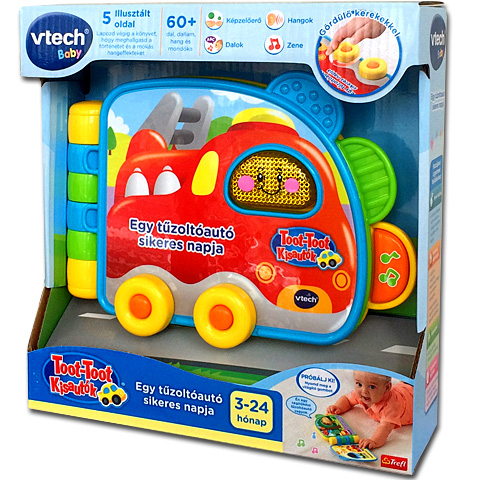 A legkisebbek a számukra kialakított kis lapzható könyvvel ismerhetik meg a Vtech Toot-Toot tűzoltóautó egy iskeres napját, ahol természetesen a tűzoltásé a főszerep. A történetet az öt illusztrált oldal mutatja be, valamint ehhez tartozó dalok, mondókák és hangeffektek is szórakoztatják a kicsiket. A több mint 60 hangeffekt remek játékélményt garantál a gyereknek, valamint fejleszti a képzelőerős és próbára tezsi az érzékszerveket is.